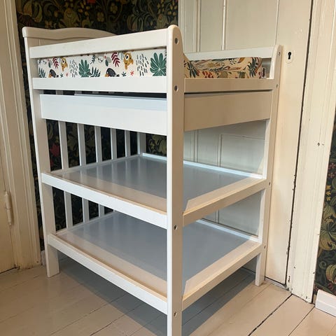 Hyvässä kunnossa jo käytettynä ostettu hoitopöytä. Ei tullut tarvetta käytölle.