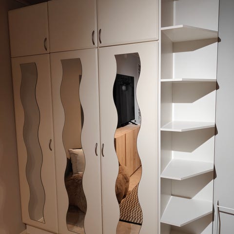 Vaatekaappi jossa 5 koria. Puran paloiksi remontin tieltä. Saranat ja kahvat pussissa.