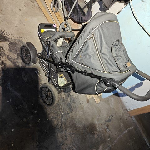 Emmaljunga lastenrattaat. Rattaissa on turvavyöt ja jalkatuki. Runko on metallia ja istuinosa pehmustettu. Soveltuu yhdelle lapselle istuttavaksi. Rattaissa on tavarakori alaosassa ja työntöaisa takana.
