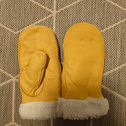Isot miesten rukkaset ilman vuoria. Vahvaa nahkaa ja ranteessa kiristys hihnat.