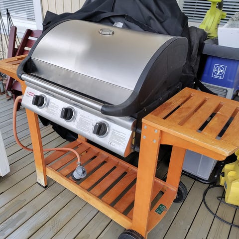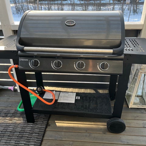 Käytetty Lucifer-grilli neljällä polttimella ja sivukeittimellä. Grilli käyttökuntoinen, mutta polttimien päälle tulevat suojapellit pitää uusia. Niitä saa ostettua 30€. Grilli on tehokas n. 12kW. Grillin kaksoiskupu, etupaneeli, sivutasot ja vaunun ovet ovat korkealaatuista rosteria. Kätevä lisä on toiseen sivutasoon integroitu astia jolla siirrät valmistettavan ruoan keittiöstä grillille. Grillin suuri 70x44 cm paistopinta-ala muodostuu ritilästä. Sivukeittimen ansiosta valmistat keitokset samalla kun grillaat. Uusi vastaavanlainen maksaa 500-600€. Vain nouto.