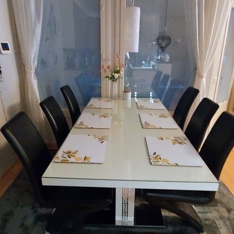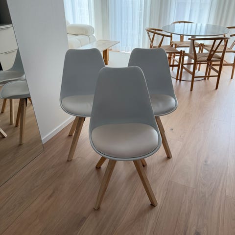 Settinä Maskun vanhan tuotannon Ekholm Ruokailutuolit 2kpl sekä muualta ostettu ruokapöytä. Pöydässä osumaa sivussa (ks. kuvat), tuolit hyvässä kunnossa.