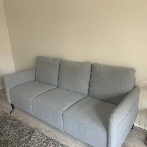 hyvä sohva, joitakin tahroja/käytänjälkiä näkyy mutta perusilme siisti. Päälliset on irtotettavat jotta voi pestä.