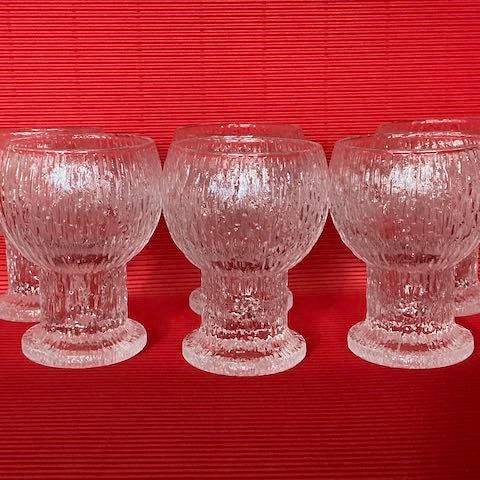 Kuusi kappaletta 1980-luvun Tapio Wirkkalan suunnitelemia ja Ittalan valmistamia Kekkeri juomalaseja. Tilavuus 20cl, korkeus 11cm, suun halkaisija 7cm. Lasit ovat vähän käytettyjä ja hyvä kuntoisia.