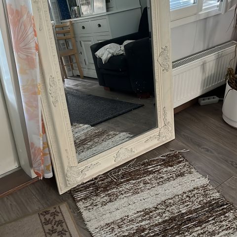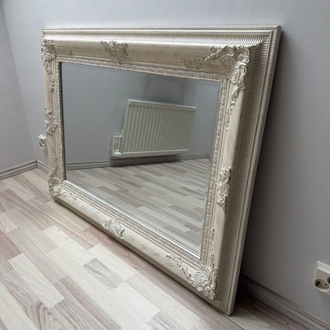 Hieno iso valkoinen puukehyksellä kehystetty peili. Koko 165 x 65 cm. Hae jo tänään!