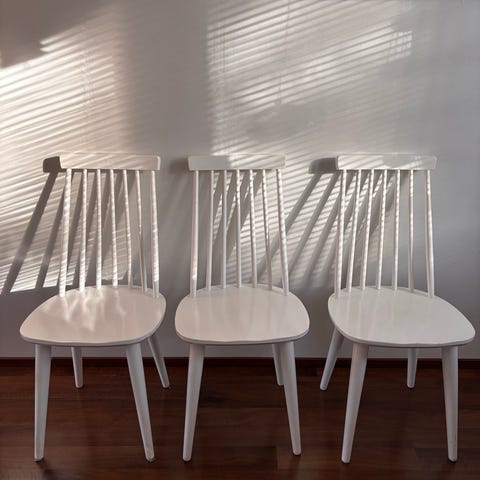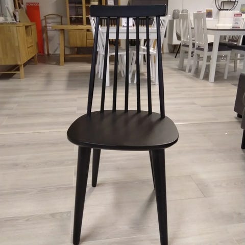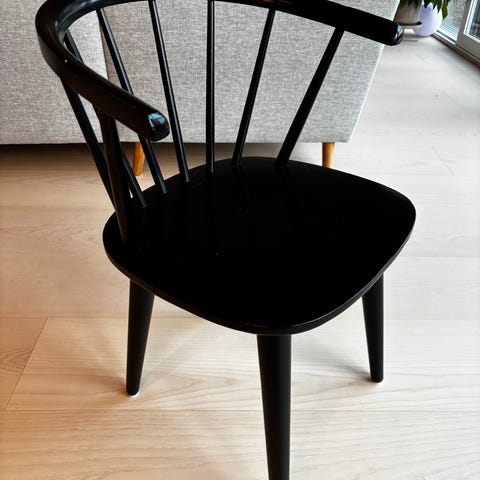 Myydään neljän Rowico Lotta pinnatuolin setti mustalla kiiltävällä lakalla. Tuoleissa on pieniä jälkiä lakatulla pinnalla, kahden tuolin selkänojan pinnat hieman heiluvat, mutta muuten tukevat, puhtaat ja mukavat istua.