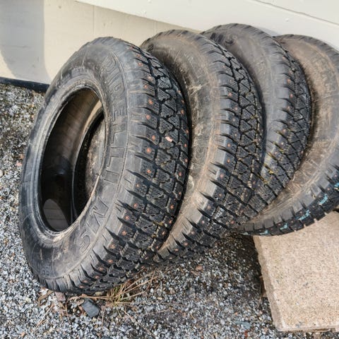 Myydään mutarenkaat. Renkaissa POR-merkintä eli saa ajaa laillisesti myös talvella. Renkaat saipatut ja nastoitut, tosin nastat alkavat olla tiensä päässä. Pintaa kahdessa n. 10-11mm ja kahdessa n. 8mm.