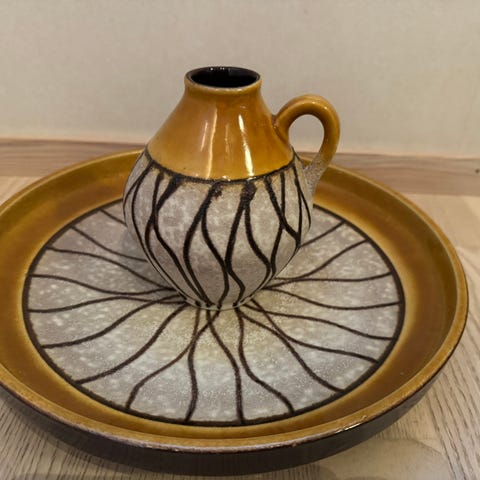 Eeva-Liisa Nissinen keramiikkalautanen monivärinen. Halkaisija 15,5 cm. Lautanen on pyöreä ja siinä on abstrakti, monivärinen lasitepinta, jossa vihreän, punaisen ja ruskean sävyjä. Taustapuolella on tekijän nimitarra. Sopii käytettäväksi koriste-esineenä seinälle tai tasolle asetettuna. Materiaalina on poltettu keramiikka. Kyseessä on ns. rakukeramiikkatekniikka.