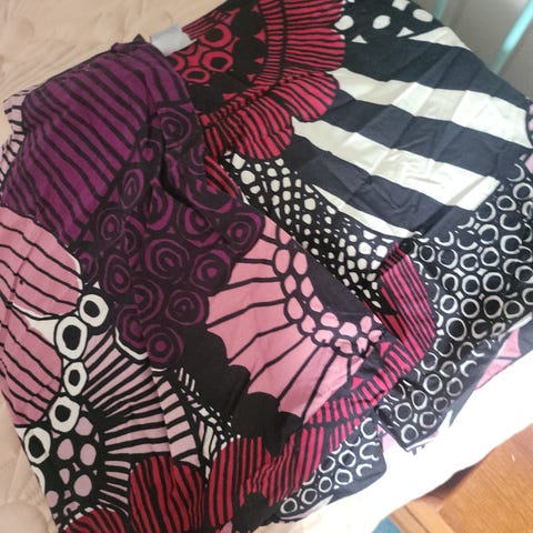 Erittäin hyvässä kunnossa olevat parivuoteen tyynyliinat 2kpl ja tuplapussilakana. Olleet käytössä vai muutaman kerran. Ei kulumia eikä vikoja. Todella kaunis ja värikäs setti. Nouto Tuusula Jokela tai postitus pakettimaksulla.