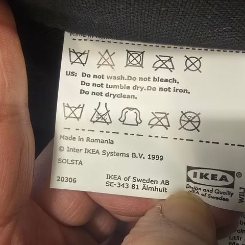 Harmaa vuodesohva Ikea Månstad sohva. Toinen käsinoja painunut, ei ole myöskään pesty eli tahroja on.