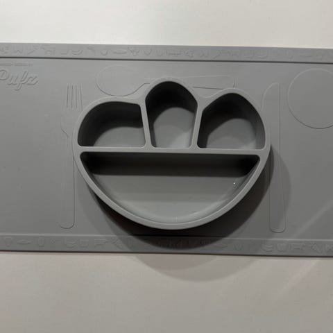 Lastenlautanen silikonista. Lautasessa on imukuppi, joka estää sen liukumisen, kaatumisen tai heittämisen. Siinä on kolme lokeroa ruoan erotteluun.