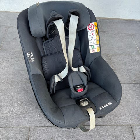 Väri tummanharmaa, painoraja 17,5kg, pituusraja 105cm. Kääntyy 360 astetta, mikä helpotti lapsen kiinnittämistä istuimeen. Tykättiin istuimesta kovasti. Luovutaan, koska painoraja tulee vastaan.