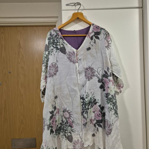 Voglia kevyt, läpikuultava kangas, koko XXL vastannee nro 46, vaaleansininen. Materiaali kevyttä polyesteriä. Pitkähihainen, avoin malli, jossa edessä solmittavat nauhat. Vähäisellä käytöllä ollut, siisti, hajusteettomalla pesuaineella pesty. Nouto Nastonharju tai sovitusti Riihelä. Käteinen tai mobilepay. Postitan matkahuollon pakettina kulut 7 e. Katso myös muut ilmoitukseni, samaan pakettiin muutakin.