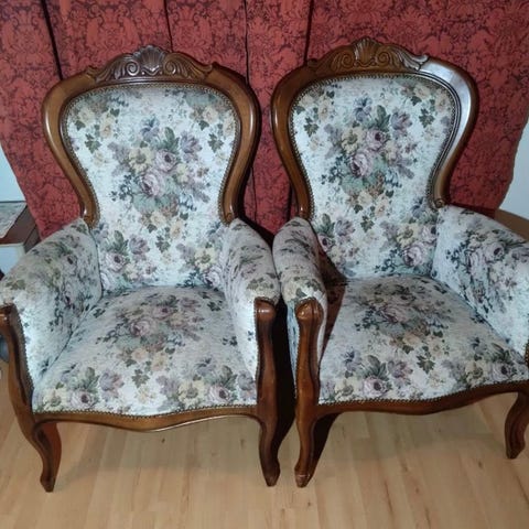 Talonpoikaisrokokoo- nojatuoli puu sininen istuin