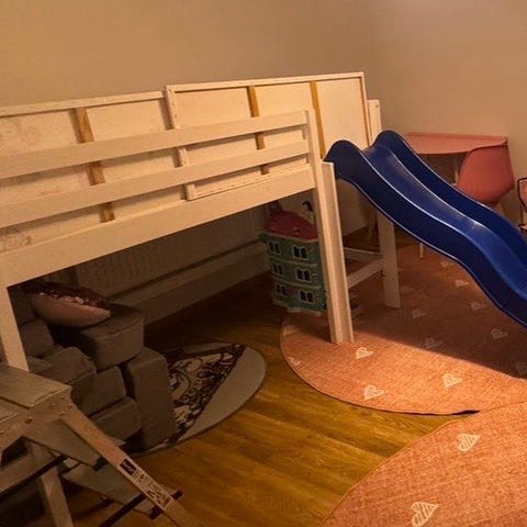 Tullut meille käytettynä ja käytön jälkiä löytyy (kolhuja, eripariruuveja yms.). Isoimpana huomautuksen aiheena liuskottunut lauta liukumäen alareunassa. Tämä ei ole meillä käyttöä haitannut, mutta saanee korjattua esim. kitillä.