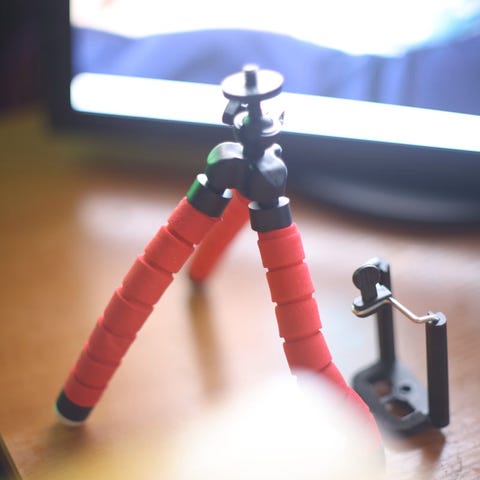 Pari erilaista kolmijalkaa ja näihin sopiva puhlinpidike