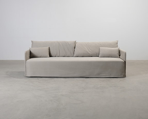 Sofacompanyn modulaarisen Daphne-sarjan käsinojallinen divaanimoduuli. Sarjan erilaisista moduuleista saa rakennettua aina tilaan ja tarpeisiin sopivan matalan ja syvän sohvan, joka ulkomuodollaan houkuttelee rentoutumaan. Näkymättömät jalat saa moduulin näyttämään siltä, että se leijuisi ilmassa. Suunnittelijana Line Nevers Krabbenhøft. Sävy: Pasha Dune.