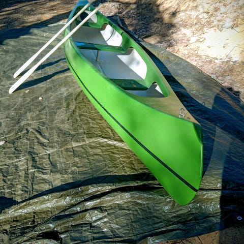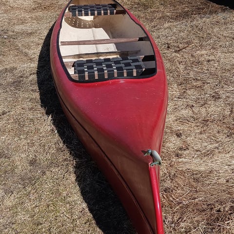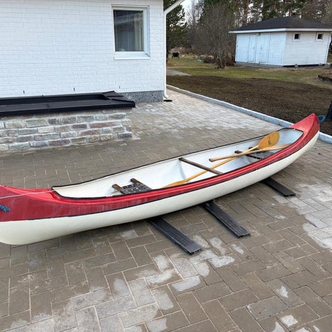 Hyvä kuntoinen kanootti kahdelle. Kanootti on vakaa ja pituuden puolesta liukuu hyvin. Voi meloa myös yksinkin, ei vaikuta kanootin asentoon.Pituus 490cm ja leveys keskeltä 90cm. Ritilikkö joka on hyvä jaloille ja tavaroille. Molemmissa päissä kantonarut. Mukaan tulee 2x kaksilapaiset melat (kajakkimelat )
