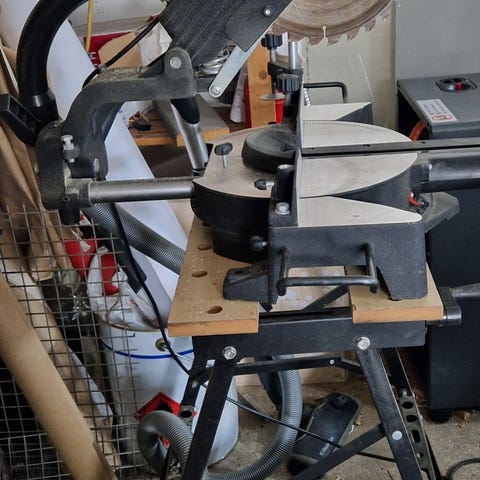 pöytäsaha puun katkaisuun ja halkaisuun. Saha on varustettu pöytätasolla ja ohjainkiskolla suorien sahausten tekemiseen. Runko on jalustalla, joka helpottaa käyttöä työpajassa tai autotallissa. Soveltuu erilaisiin puutöihin, kuten lautojen ja levyjen sahaamiseen oikeaan mittaan. Tarkemmat tekniset tiedot, kuten terän halkaisija, teho ja sahaussyvyys, eivät käy ilmi kuvasta.