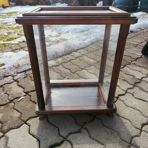 Myynnissä hyväkuntoinen uniikki kirja/vitriinikaappi koko korkeus 210 leveys 200 syvyys 25 cm