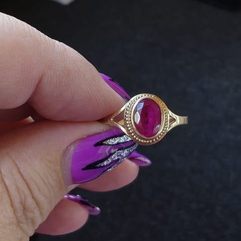 Kultainen sormus. 14k? Ei ole luuppia. Millä tarkistaa. Sisämitta 2.3cm kivi ei tiiä mikä.