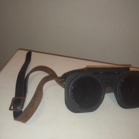 Kaasuhitsauslasit. Kääntyvä linssiosa ja säädettävä nahkahihna