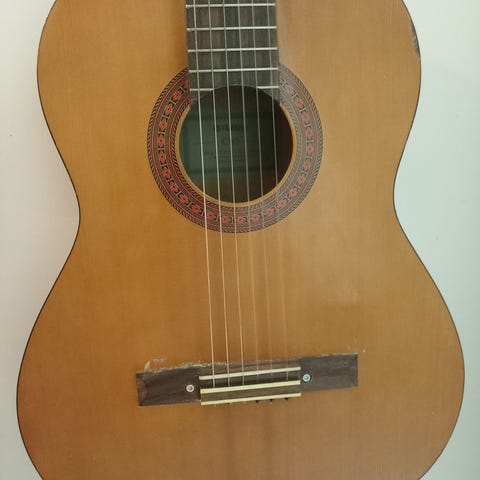 Hyvä, kauan soittamatta ollut siisti soitin. Ei kolhuja, säilytetty 20 vuotta siististi pussissa. Kielet syytä vaihtaa. Ostettu aikanaan Suomessa keikalla olleelta brasilialaiselta muusikolta.