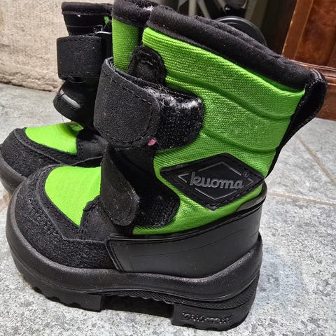 Kuoma lasten talvikengät unisex-mallina. Lämpimät ja siistit. Mustat, varrelliset kengät, joissa tukeva kumipohja. Soveltuvat sekä tytöille että pojille kylmään säähän ja ulkoleikkeihin. Koko 22.