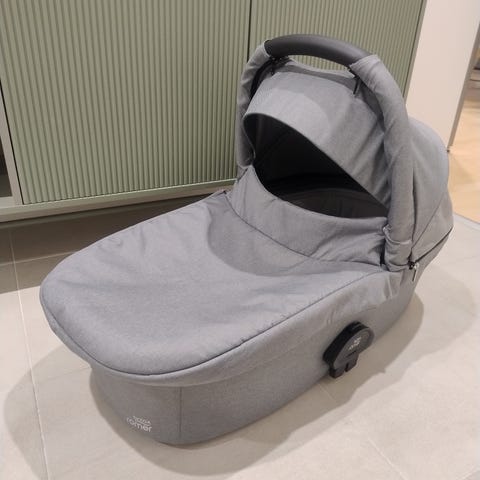 Uusi, käyttämätön Britax Smile 5Z vaunujen runko, otettu paketista vain sisällön tarkistusta ja kuvien ottoa varten. Saatu korvaavana tuotteena viallisen tilalle, mutta meille ei ole ollut enää tarpeellinen.