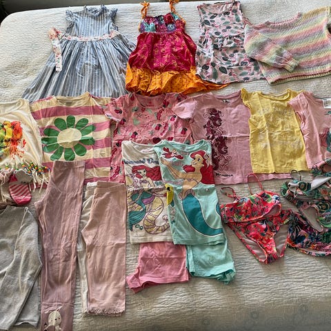 Sekalainen (Ciraf, Zara, Bogi, Lupilu, Peuhu, Lindex)lasten vaatepaketti tytöille, koko pääasiassa 110, yksi t-paita 116 ja yhdet housut 104. Paljon käytettyjä vaatteita, jotka menevät vielä hyvin seuraavalle touhuajalle.