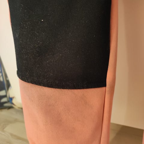 Ainoina mainittavina moitteina on molempien polvivahvikkeiden alareunoissa olevat saumat, jotka ratkenneet keskikohdastaan. Niiden alla oleva haalarikangas on ehjä. Lisäksi päävetoketjun alaosan oikealla puolella pieni pistemäinen reikä.
