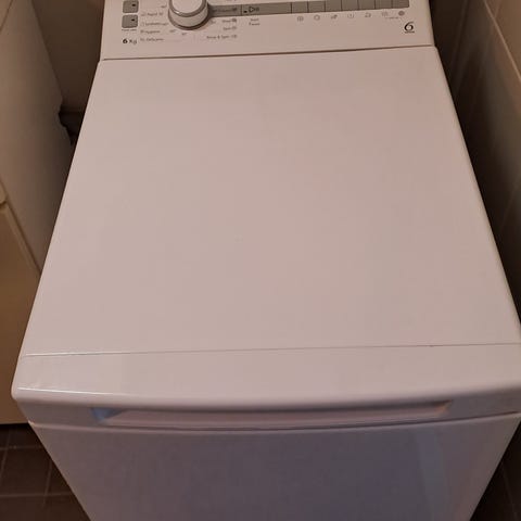 Siisti ROSENLEWIN päältätäytettävä pyykinpesukone. Tärisee linkouksen aikana, johtuu varmaan siitä että toinen säädettävistä jaloista puuttuu.