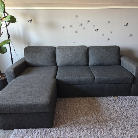 Myydään tummanharmaa sohva, 3 istuttava sohva, ikean sohva. Koirataloudessa. hyvänkuntoinen ja suht uusi sohva. Divaani osa irti, liitos osat on tallella.
