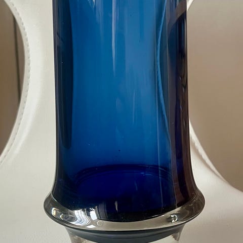 Sininen Tapio Wirkkalan maljakko 3581, pohjassa signeeraus. Korkeus 20 cm, halkaisija 8,3 cm. Ehjä, klassikko. Hinta 46€ + postikulut.