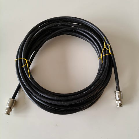 Kaapelin tyyppi RG 213/U, liittimet 50-7 N-tyyppiä uros/ naaras, joten sopii myös jatkojohdoksi.