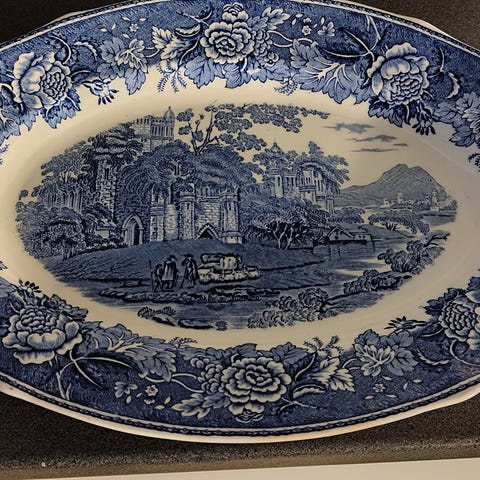 Arabia soikea tarjoiluvati, jossa ruskea koristekuvio reunoilla. Materiaalina lasitettu keramiikka/posliini. Sopii esimerkiksi ruoan, leivonnaisten tai hedelmien tarjoiluun. Pohjassa Arabia Finland -leima. koko 36cm x 24 cm