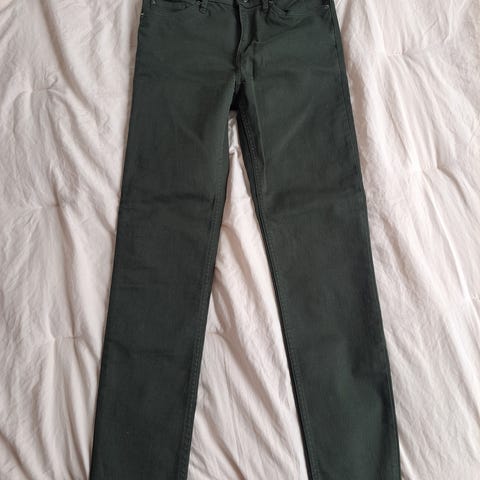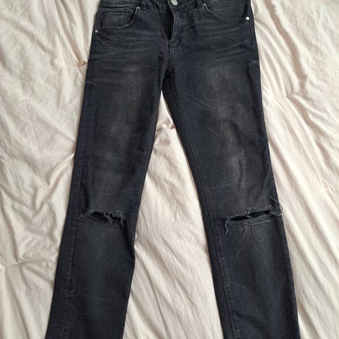 Myydään vaaleansiniset farkut, koko S. Ostettu Bikbokista. Kangas on joustavaa, ovat oikein mukavat jalassa.