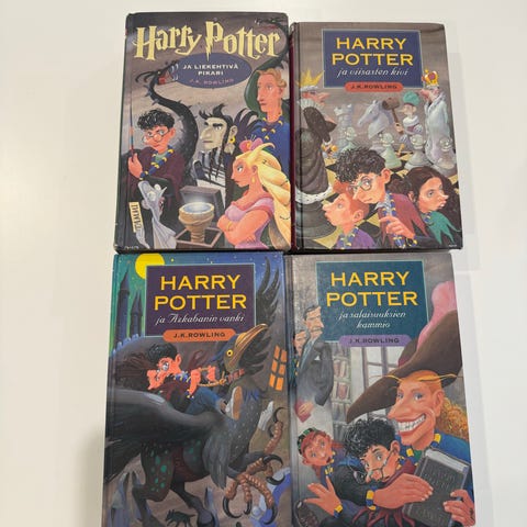 Lukemattomia ja hyvässä kunnossa. Kolmannessa kirjassa (HP and the Prisoner of Azkaban) on repeämä kansipaperissa, joka tullut kuljetuksessa aikoinaan ja siihen laitettu magic teippiä -> näkyy viidennessä kuvassa.