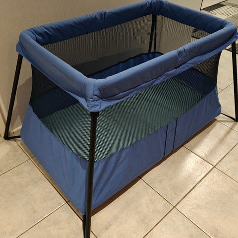 Baby Björn light matkasänky. Erittäin hyvässä kunnossa, ollut satunnaisessa käytössä mummolassa. Säilytetty sisätiloissa, ja aina ollut kosteussuoja eli patjakin vahingoittumaton. Ostettu 2023,yhden lapsen käyttämä. Mukaan Baby Björnin muotoonommeltu lakana.