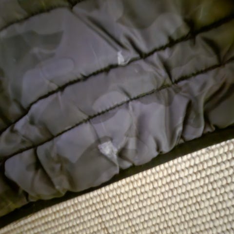 35% villaa ja loput polyesteria. Toissavuoden malli. Lisäkuvassa kärkien pieni nirhauma päällikankaassa, ei kuitenkaan vuoda tai ole reikää siis läpi.