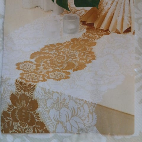 Pöytäliina on täysin käyttämätön.