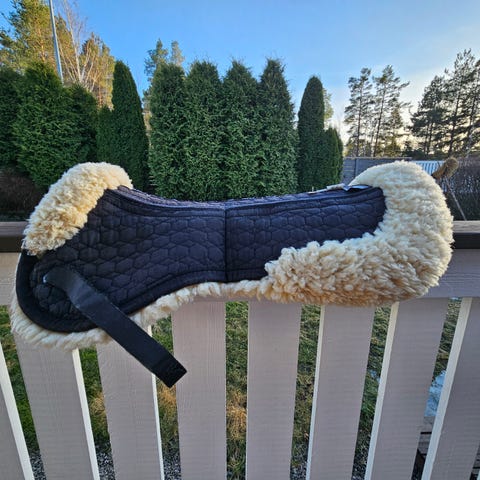 MediLamb palaromaani, taskuja 2kpl edessä, 2kpl takana, joka taskuun kolme lisätäytepalaa, vain muutama ollut käytössä. Ei ole pesty, mutta siisti käyttökuntoinen romaani. Hieman karva kulunut säkäalueelta, mutta sisältä siisti. Ollut 16-17,5" satuloissa.