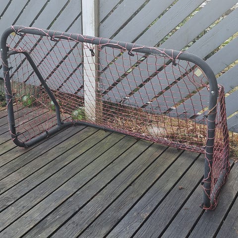 Pienellä fixauksella maali pihapelejä varten, kulmiin vähän narua rikkimenneen tilalle ja maalia pintaan, toimii myös korjaamatta :) Tukeva teräksinen runko. Mahtuu kuljettaa farmariautolla