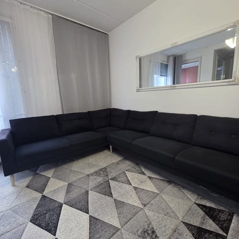 Sohvan saa kahdeksi osaksi kuljetusta varten. Vain nouto Espoon Kilosta ja mukaan kantoapua. Talossa on hissi.