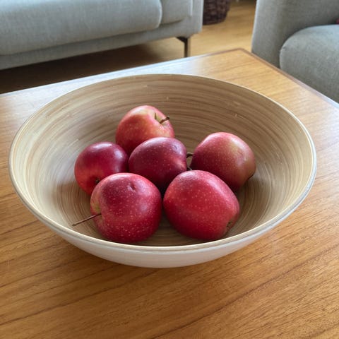 IKEA kulho bambua. Pyöreä, puunsävyinen tarjoilu- tai salaattikulho. Soveltuu erilaisten ruokien, kuten salaattien, hedelmien tai naposteltavien tarjoiluun ja säilyttämiseen keittiössä tai ruokapöydällä.