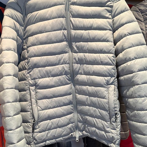 Umbron kevyt toppatakki, yksi nappi irronnut, saa laitettua uuden,ei ole revennyt siitä kohtaa. Ollut vuosia käytössä,mutta ominaisuudet tuntuvat olevan edelleen tallella. Koko 44