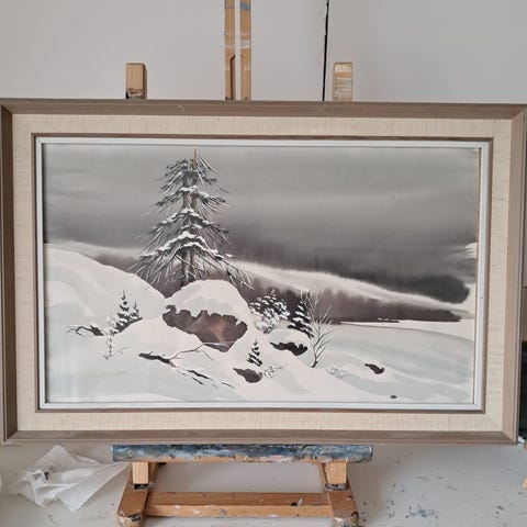 Öljyvärimaalaus koivumaisema kehystetty