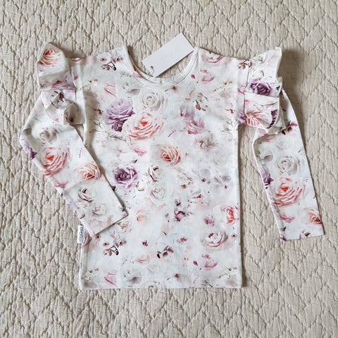 Gugguun upea pitkähihainen frillapaita, jossa ihana kukkakuosi Pink tiny flowers. Koko 104 cm. Uutena ostettu ja yhden tytön pitämä. Kunto erinomainen, ehjä ja siisti.