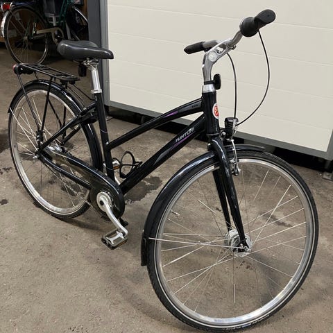 Hyväkuntoinen, merkki Tunturi Yanomany, fuksian värinen, 28" renkaat, seisomatuki, etulamppu, takateline, heijastin takana, käsi- ja jalkajarrut. Lukkoon ei avainta.