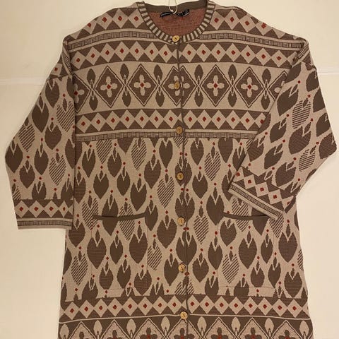 Gudrun Sjödén neuletakki naisille, koko XL. Materiaali 100 % puuvillaa, josta 80 % on luomupuuvillaa ja 20 % kierrätyspuuvillaa. Neuletakissa on mustavalkoinen, kirjavan vaikutelman antava kuviollinen neulos ja edessä koristeelliset napit. Sopii käytettäväksi arjessa ja kerrospukeutumisessa esimerkiksi puseron tai mekon päällä.